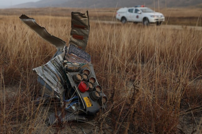 A piece of fuselage and debris was scattered in the surrounding area (Picture: AFP/Getty Images)
