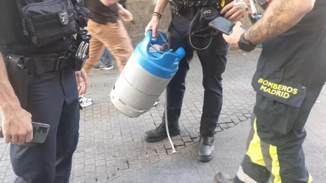 The gas cylinder was safely recovered by police (Picture: Somos Madrid)